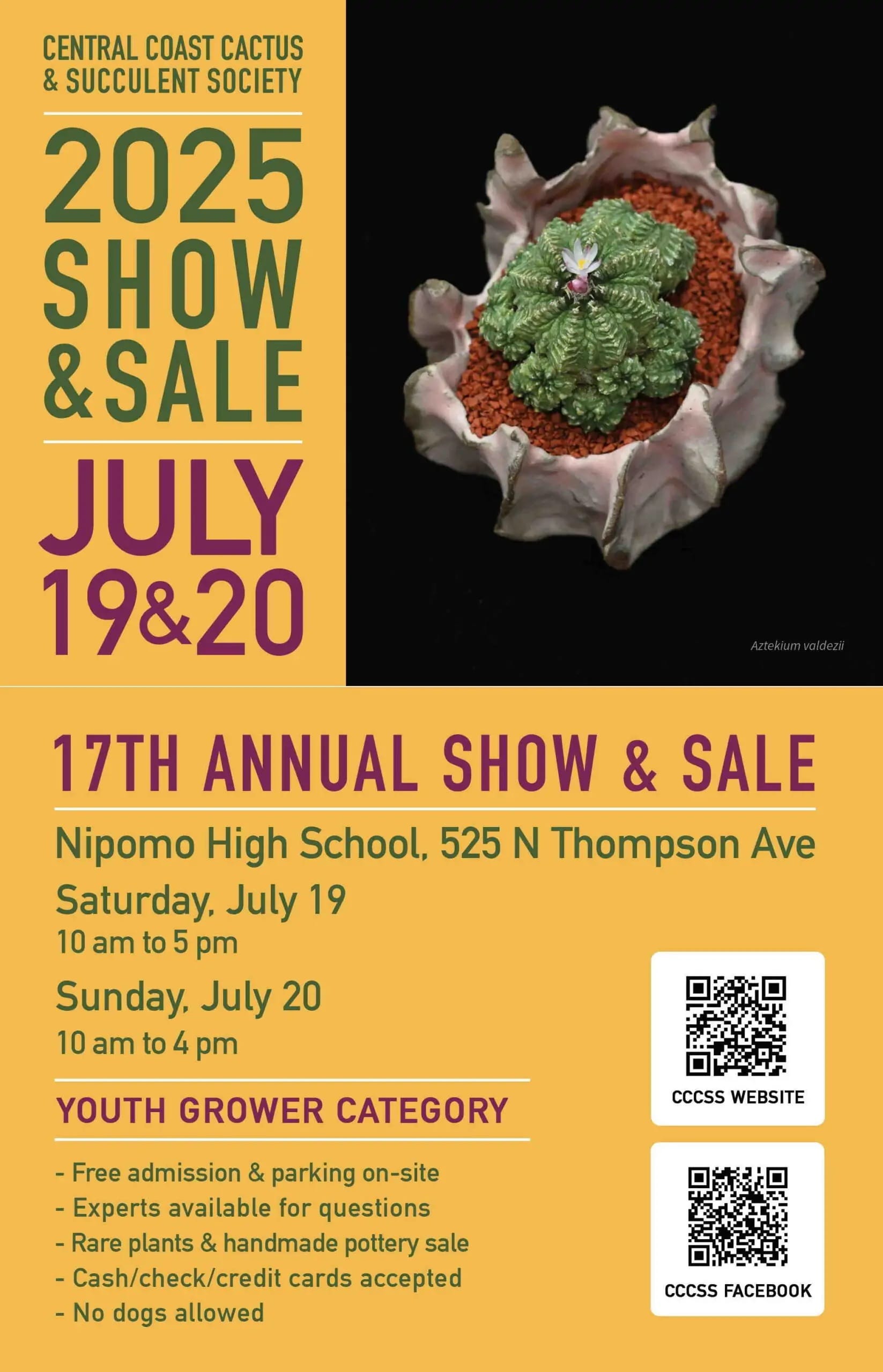 On July 19th and 20th at Nipomo High School, the Central Coast Cactus & Succulent Society is hosting its 17th Annual Succulent Show and Sale, featuring a dozen vendors and hundreds of specimen plants on display. The event is free to attend and open to the public.