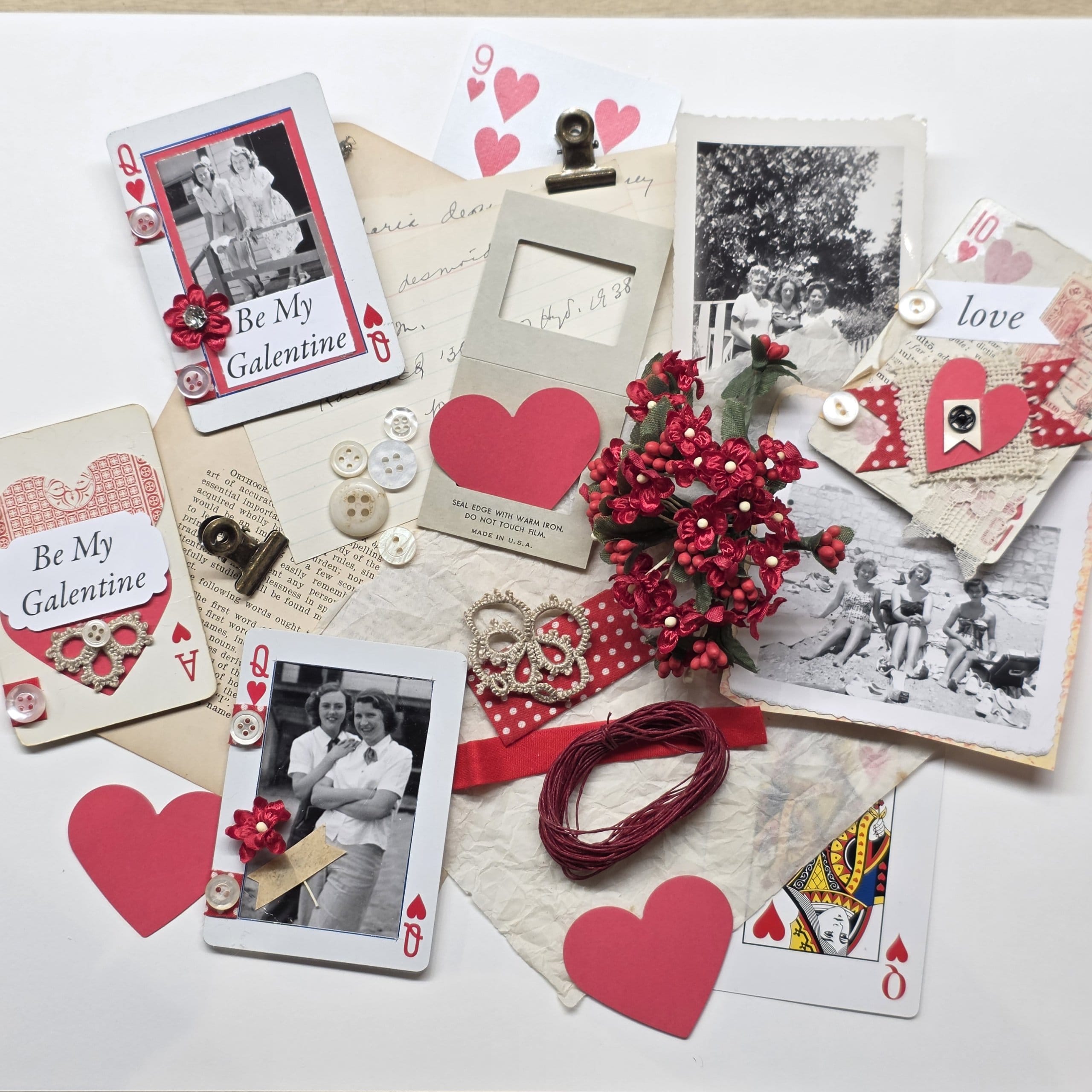 Indulge in an evening of wine, sweet treats, and creative expression. Enjoy a curated cookie and wine experience with Region & Brown Butter Cookie Company while exploring the beautiful craft of altered art. You will create your very own unique Galentine’s Day cards with collage, using playing cards (hearts, of course!), vintage paper, ribbon, photos and other fun bits we’ve pulled from our stash especially for this event.