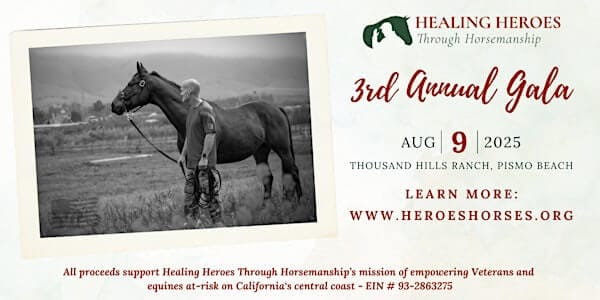 All proceeds support Healing Heroes Through Horsemanship, a 501(c)(3) nonprofit empowering Veterans and rehabilitating at-risk horses on Californiaโs central coast. Your attendance helps fuel vocational horsemanship training, job placement, and hands-on equine rehabilitation programs โ creating Healing, Purpose, and Opportunity for Veterans and Horses.