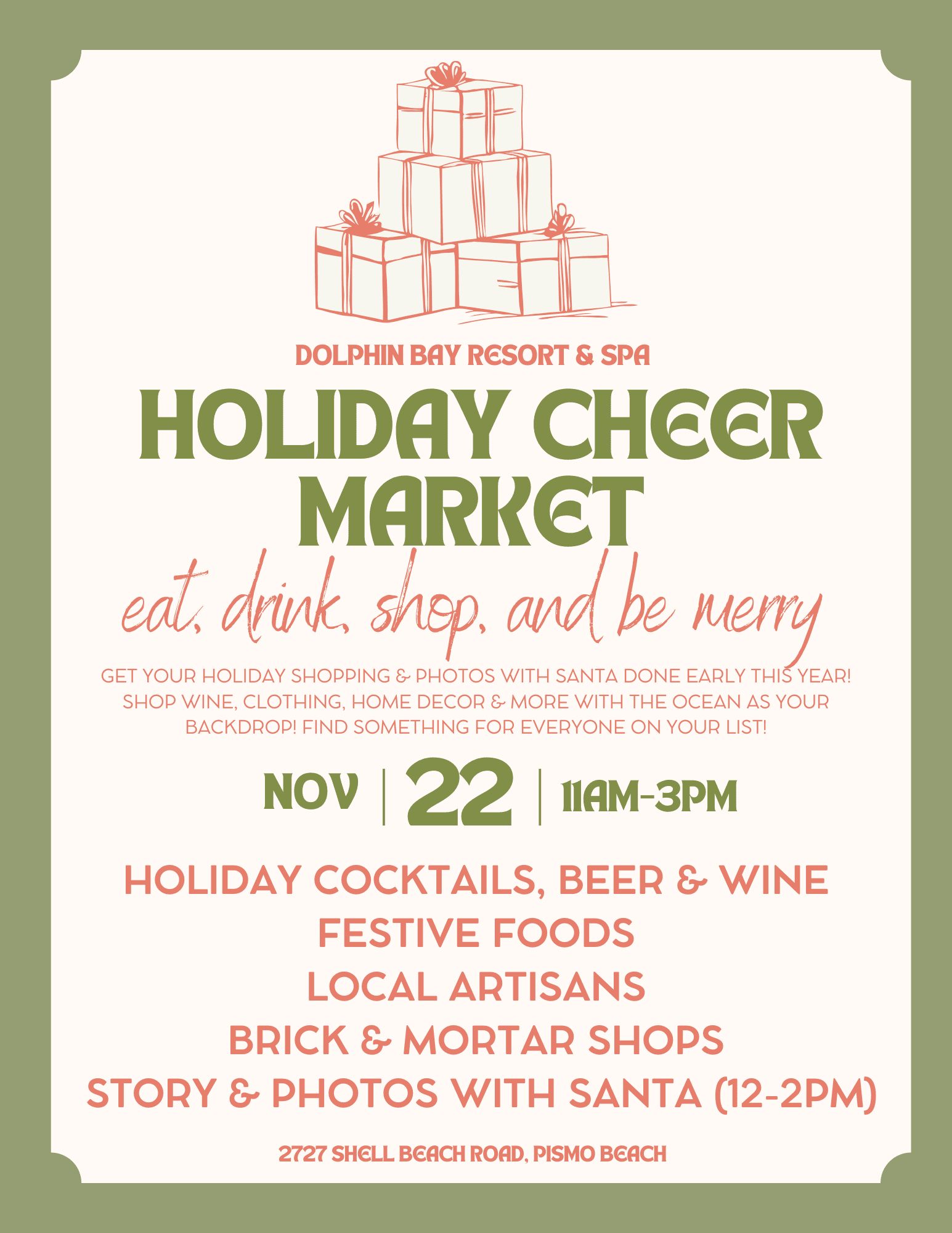 Oceanfront Holiday Cheer Market at Dolphin Bay Resort & Spa on November 22nd, 11am-3pm!✨🎄
