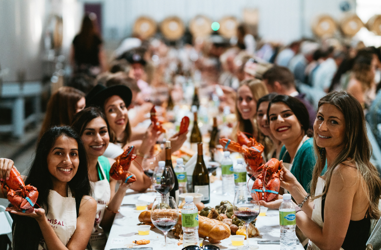 Grab your friends, abandon the silverware, don our traditional Lobsterfest apron, and join us for an unforgettable evening at the winery. Begin the evening with a curated selection of wines to accompany our oyster bar and passed hors d’oeuvres. Segway to your seat where you will enjoy steaming lobster with unlimited prawns, corn on the cob, artichokes, potatoes, garlic, and French bread which will be ceremoniously poured from huge cooking pots down the middle of a butcher paper-covered table. End the evening, dancing to DJ Danny Steils Lobsterfest playlist while sipping on more delicious wine and enjoying local gelato from our friends at Leo Leo Gelato.