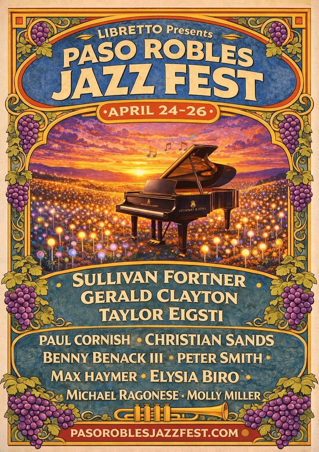 Presented by LIBRETTO, the inaugural Paso Robles Jazz Fest brings world-class jazz to California’s Central Coast with intimate performances and a stunning grand finale at Sensorio. The three-day celebration features acclaimed artists in limited-seating concerts, plus an exclusive VIP opening performance on April 23.