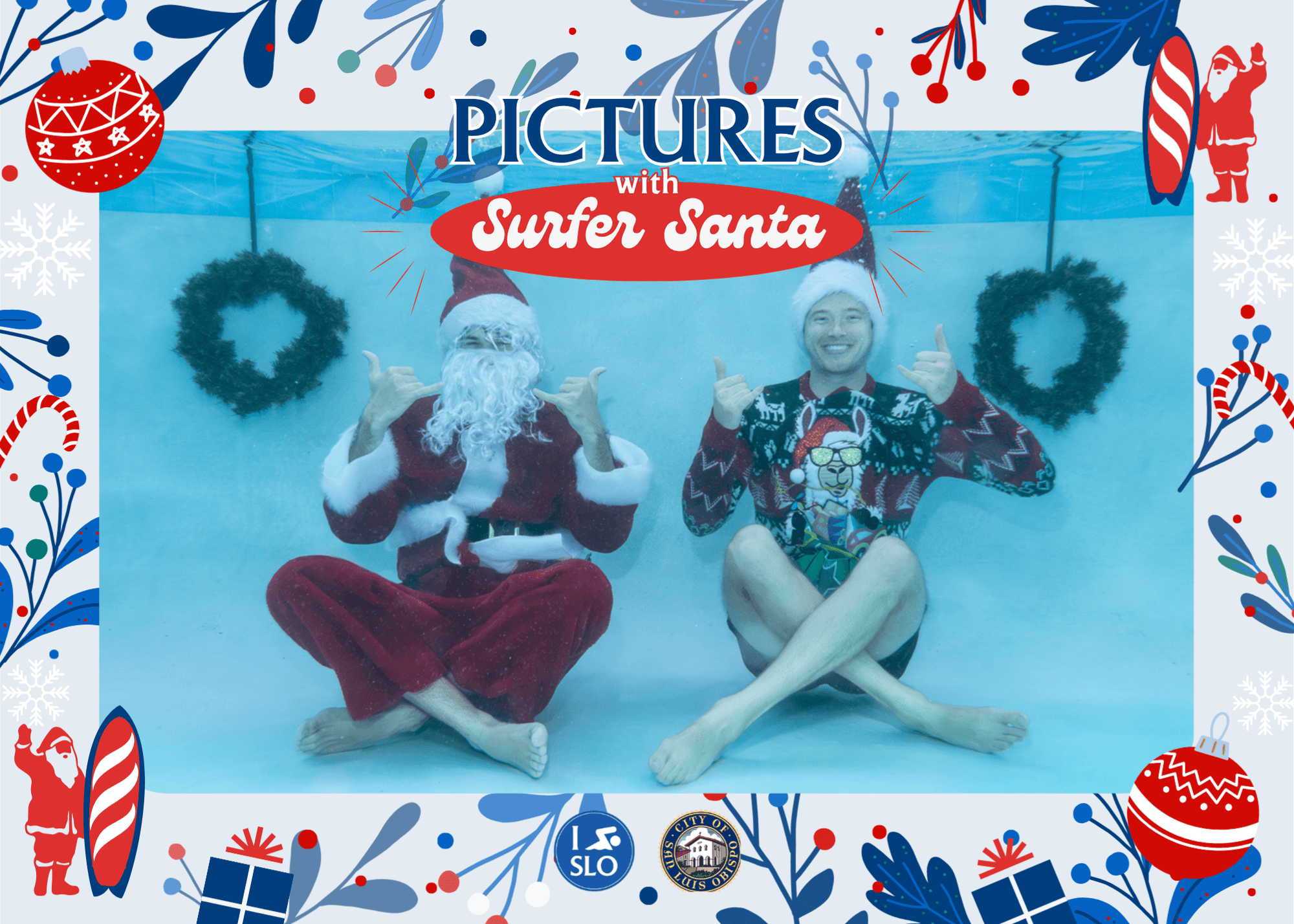 Tired of the same Holiday Photo, Stuck in the Holiday card rut? This year, make a SPLASH with the SLO Swim Center for underwater family photos with Surfer Santa.